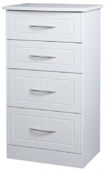 4 drawer midi chest Metal runners on drawers Available in white or cream |