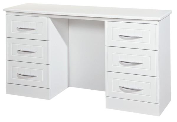 6 drawer kneehole dressing table Metal runners on drawers Available in white or cream |