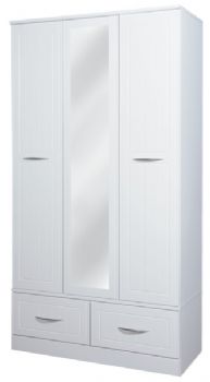 Triple robe with with mirror and drawers Drawers on metal runners Available in white or cream |